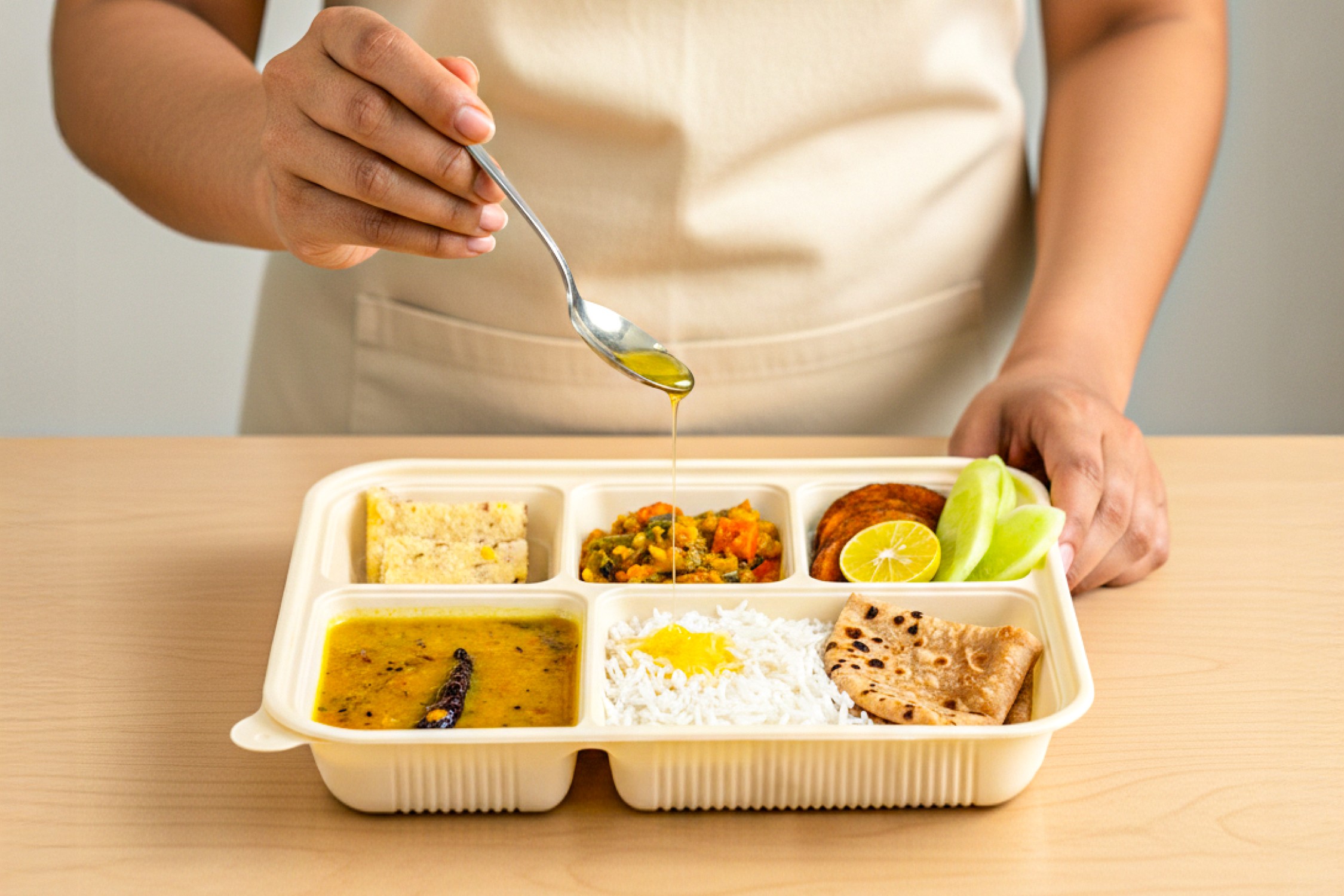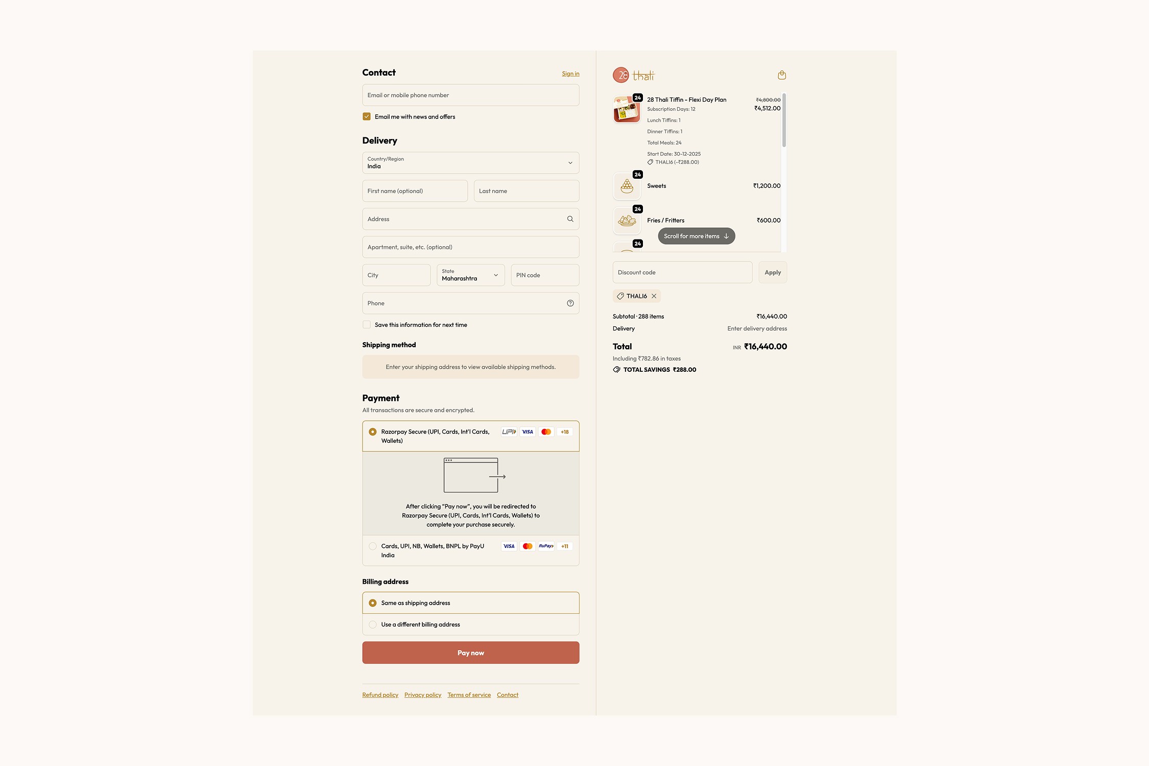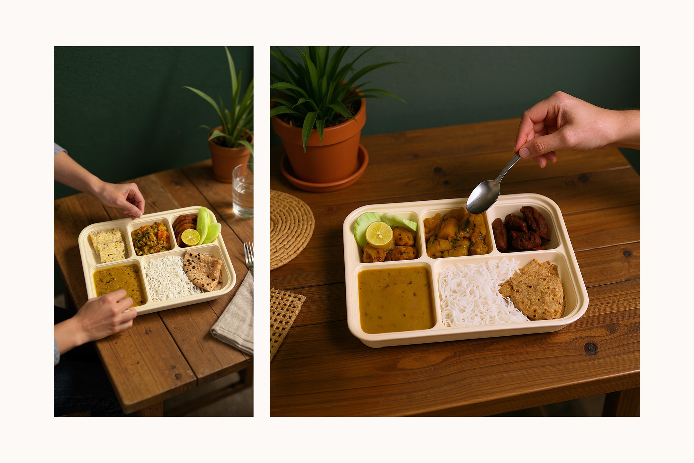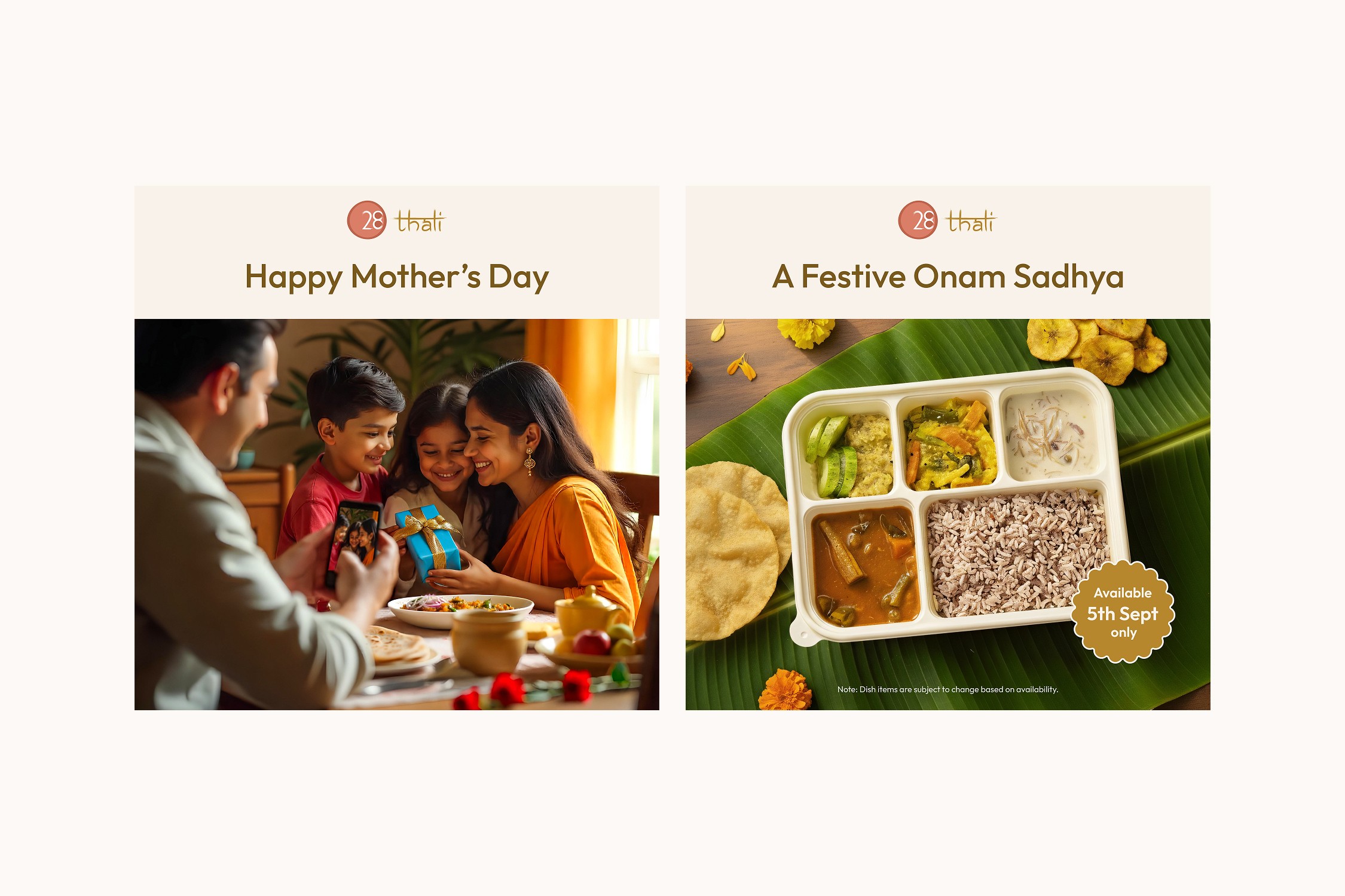 28 Thali is a Mumbai-based vegetarian subscription brand founded in 2023. It celebrates India’s culinary diversity with authentic, home-style meals, cooked using cold-pressed oils, Himalayan rock salt, and in-house masalas, and served in eco-friendly packaging that reflects its sustainable values.