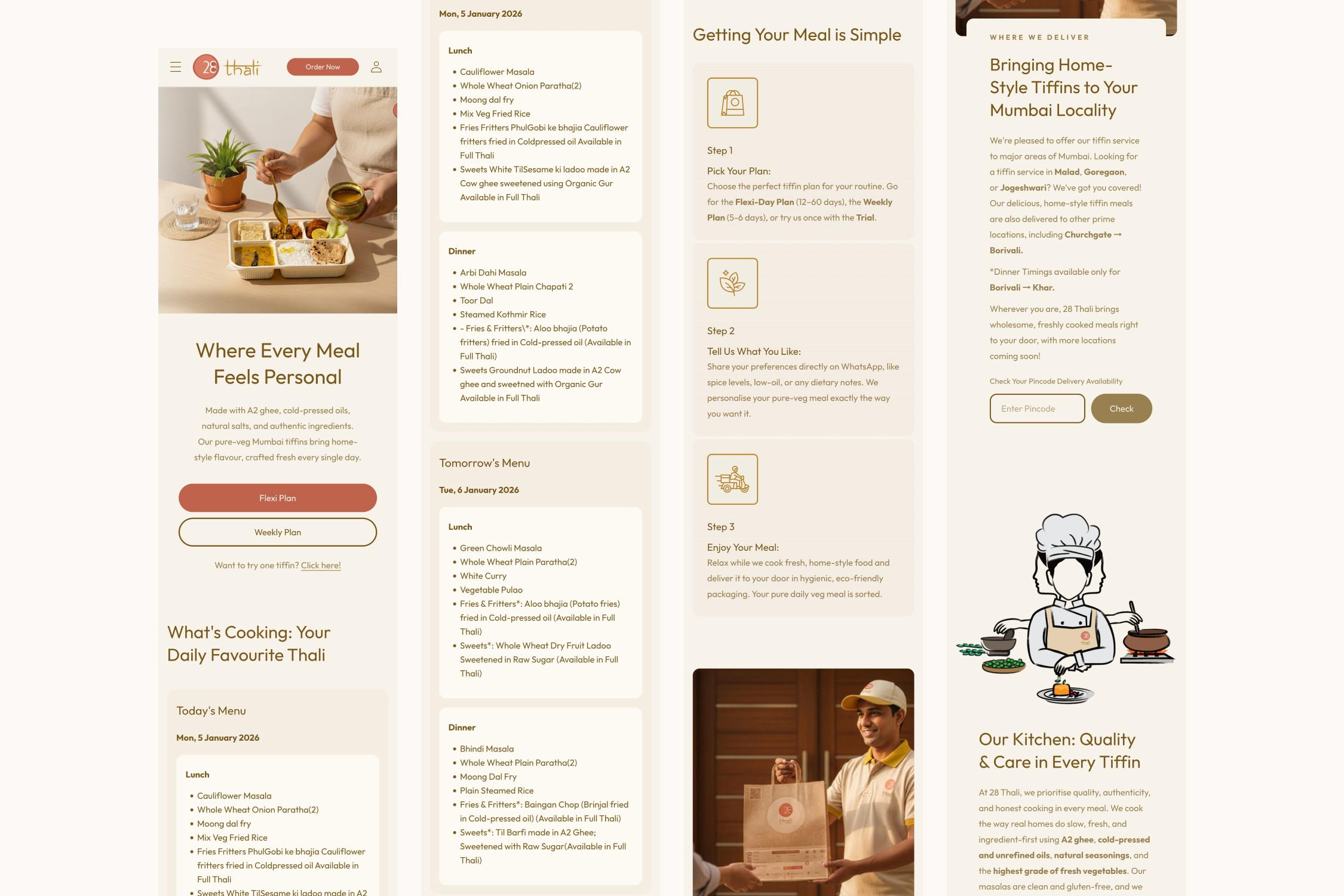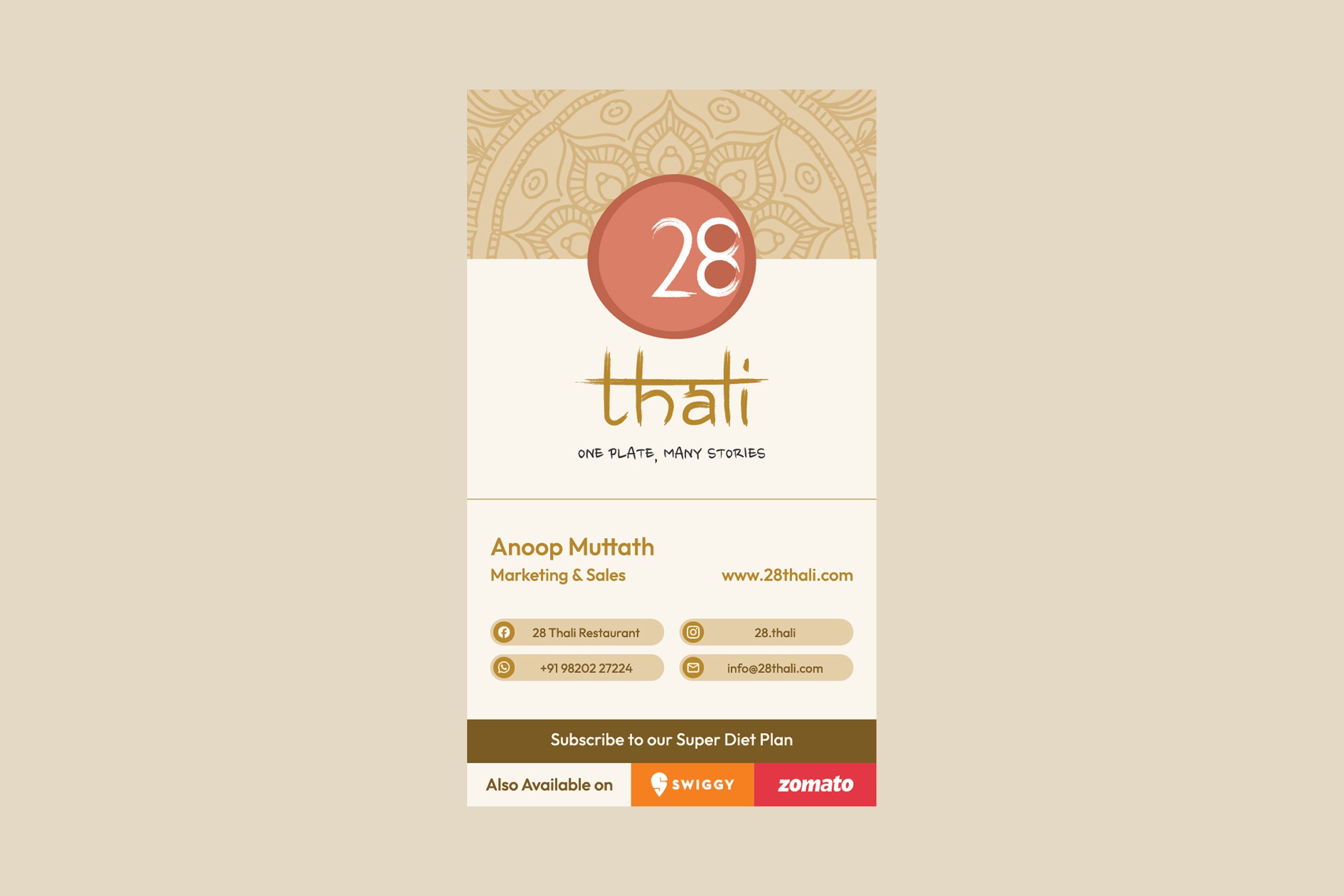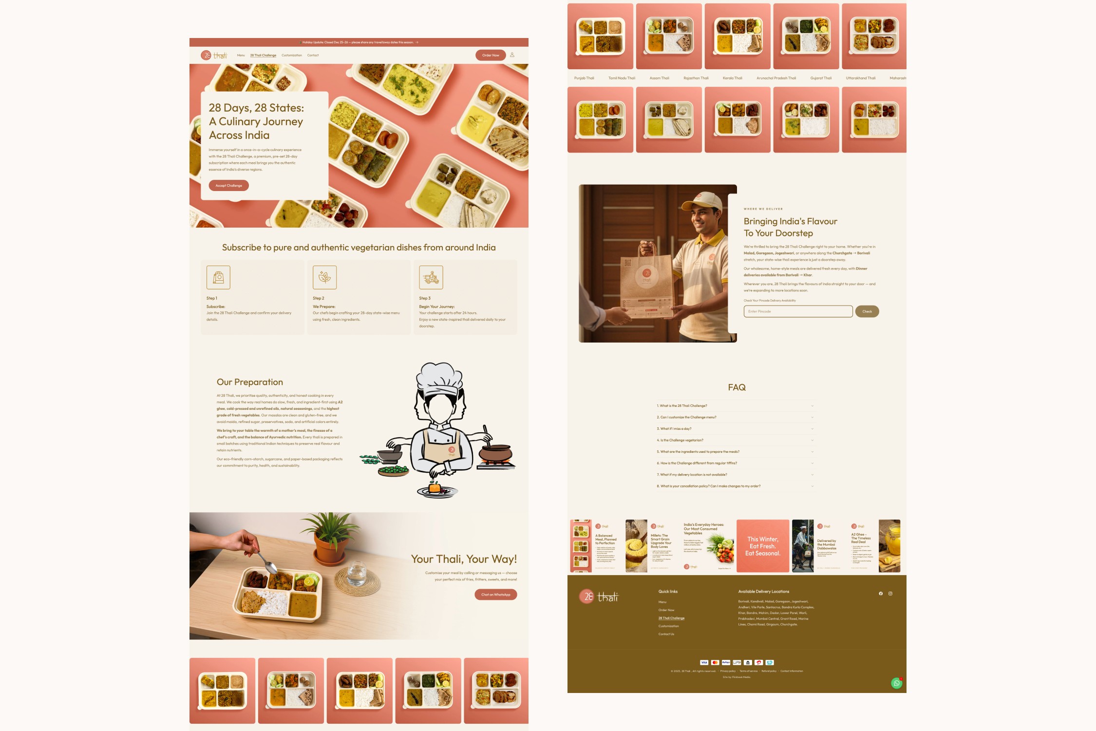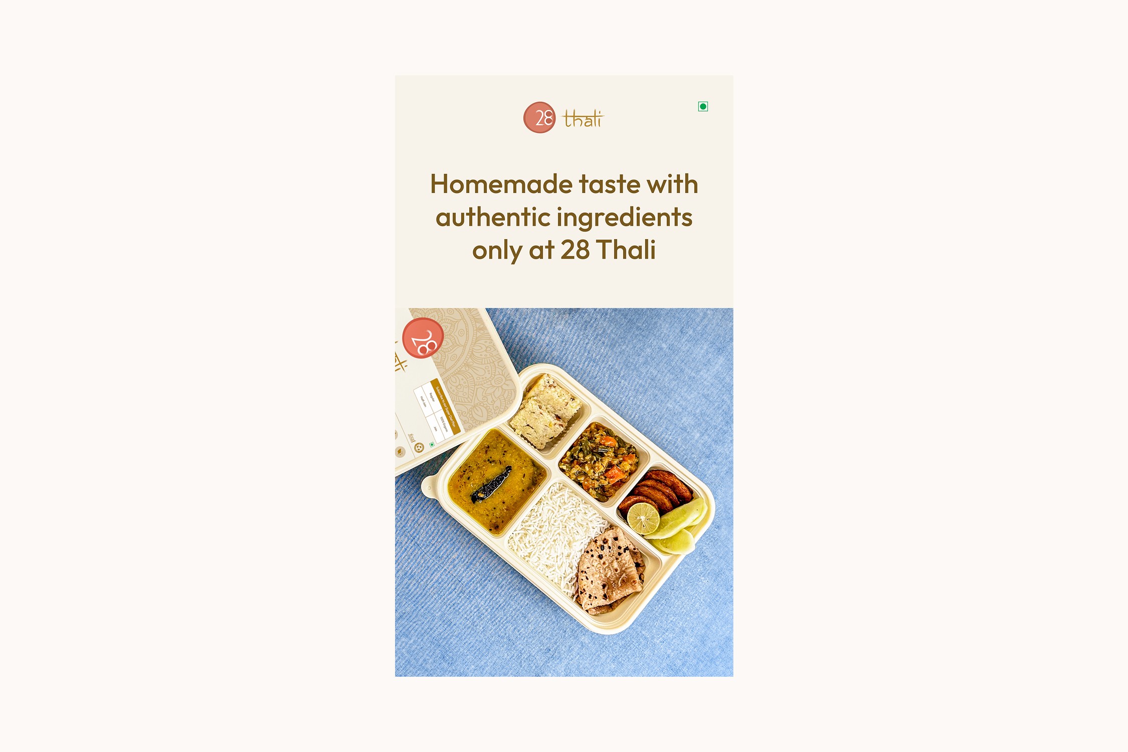 28 Thali began as a food concept focused on delivering authentic, home-style meals. Our role was to shape this idea into a recognizable, dependable subscription brand with a clear visual and digital identity.