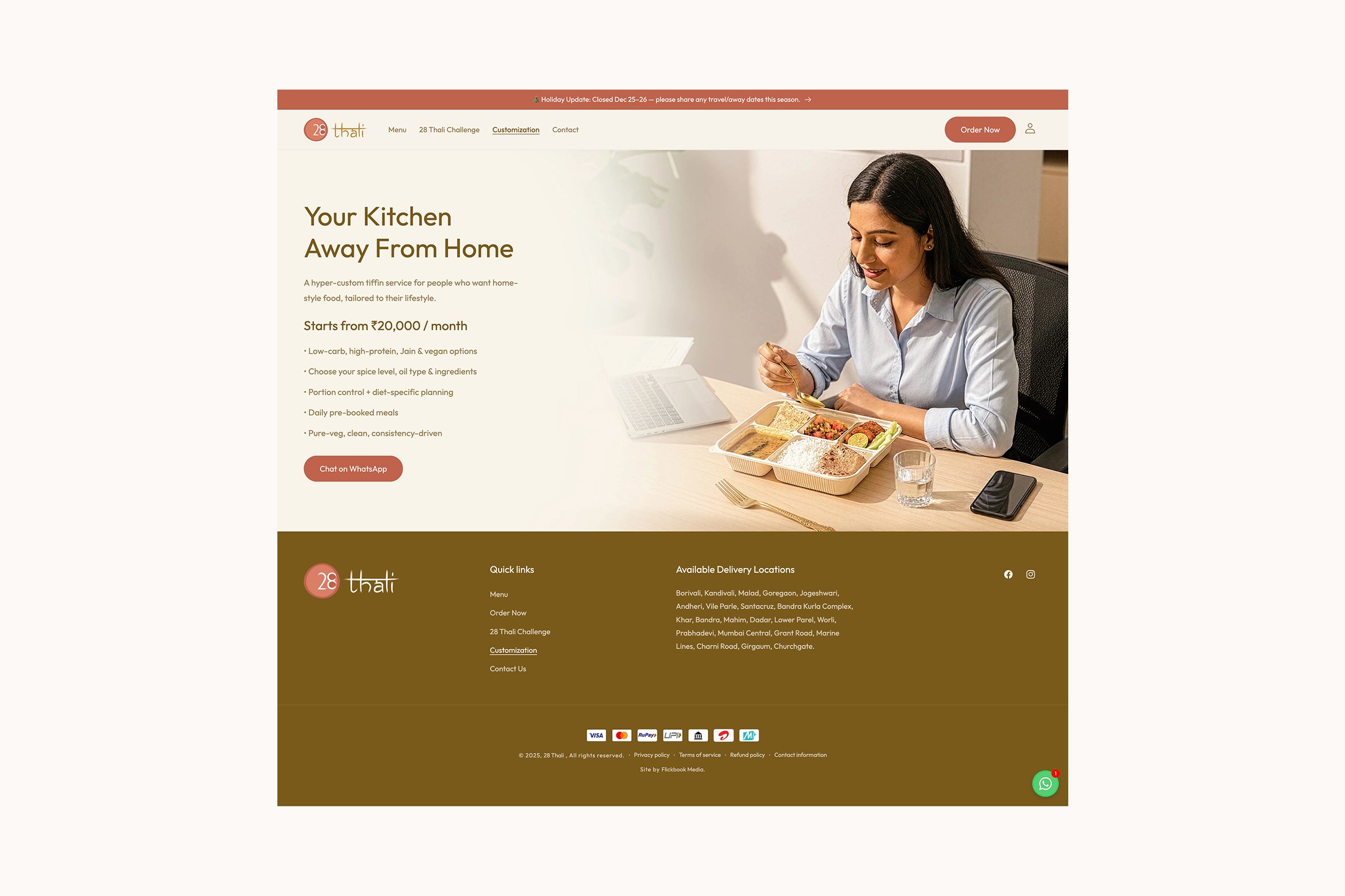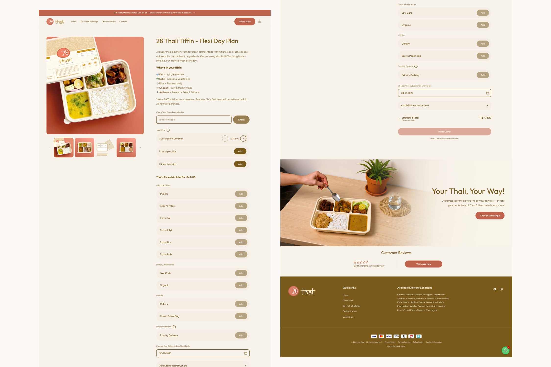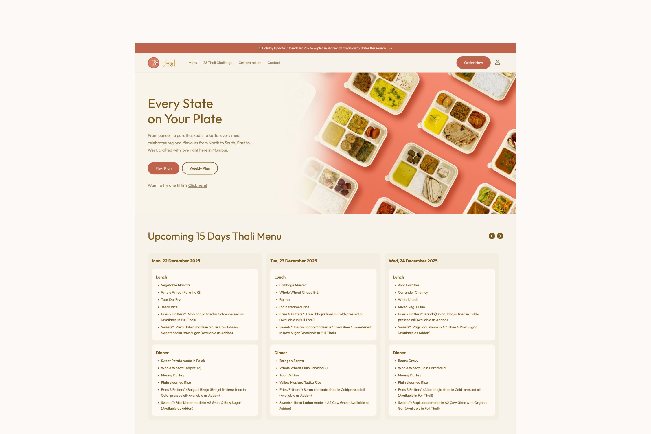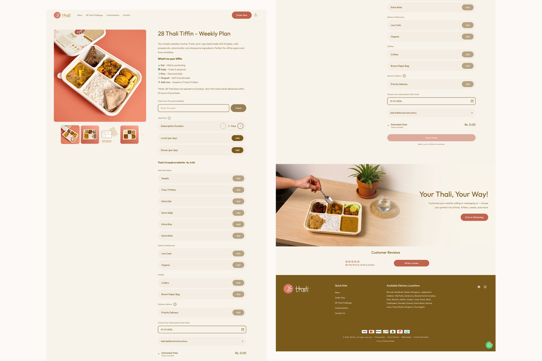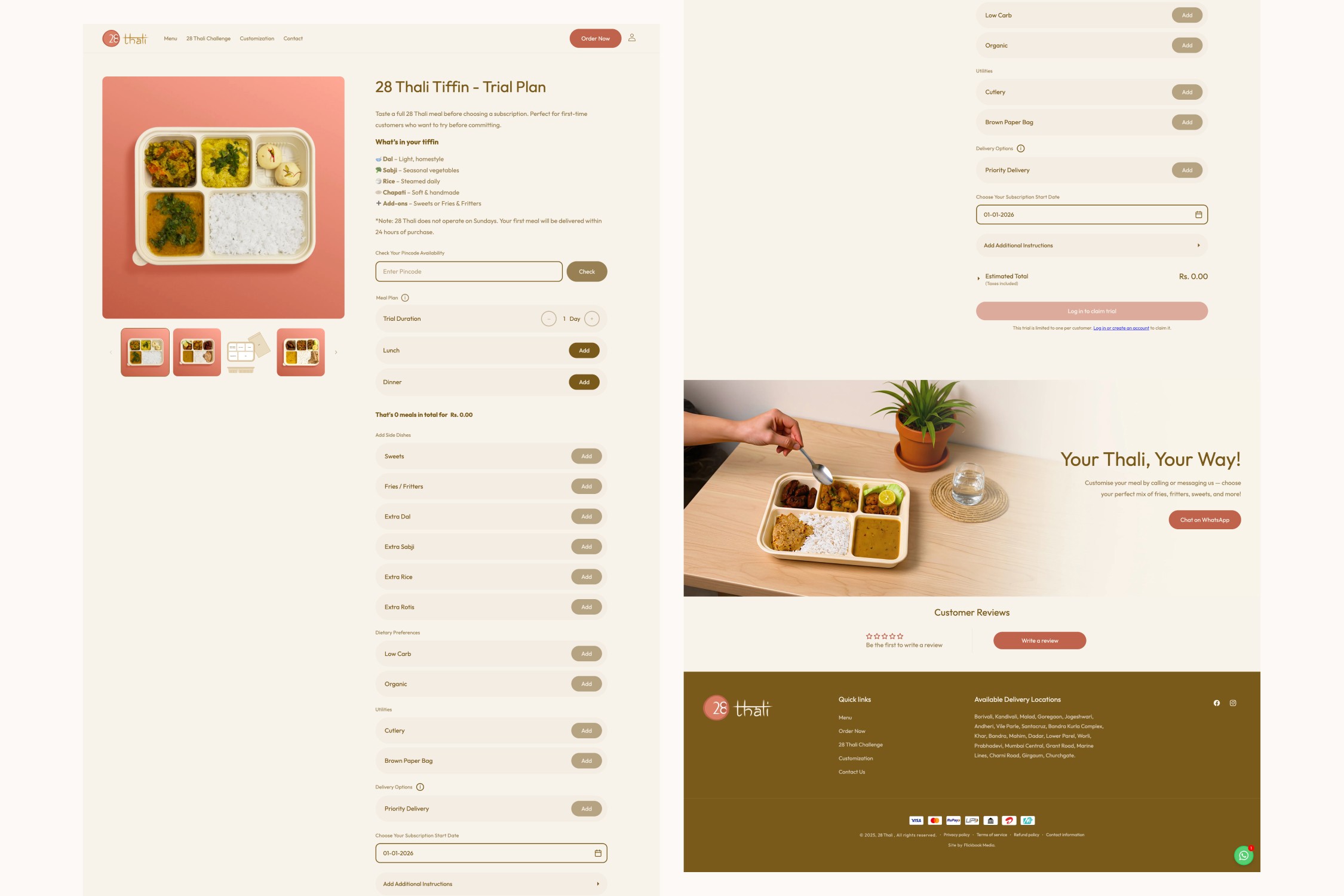 28 Thali began as a food concept focused on delivering authentic, home-style meals. Our role was to shape this idea into a recognizable, dependable subscription brand with a clear visual and digital identity.