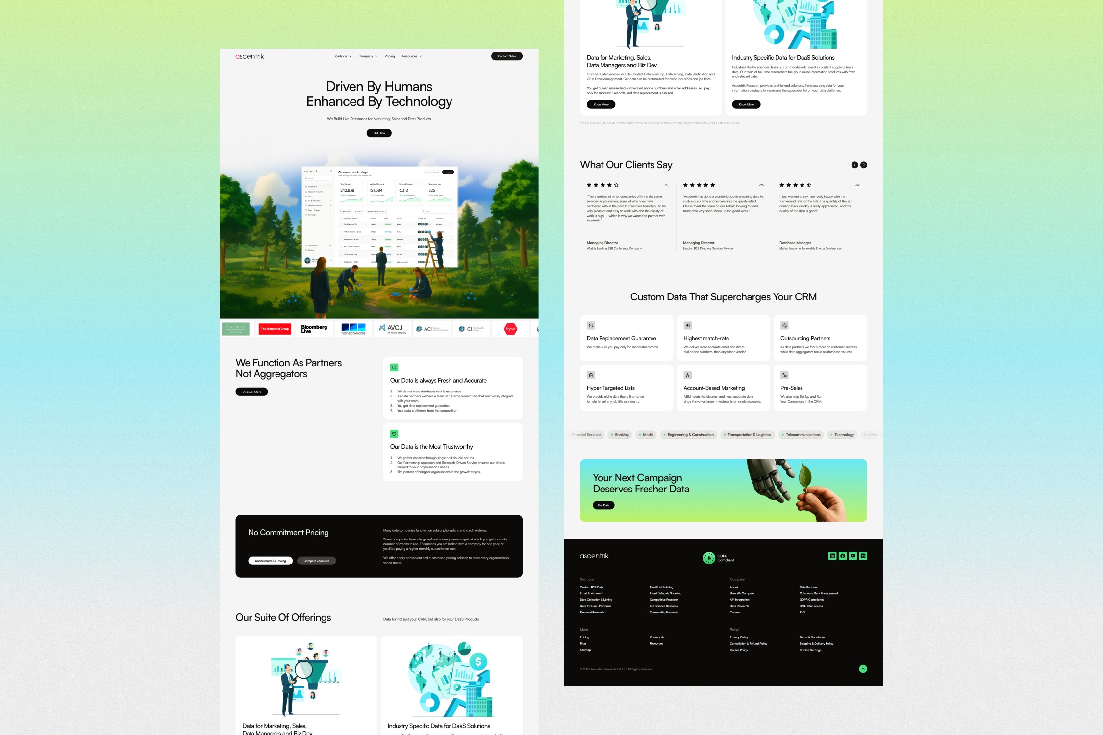 The result was a cohesive identity that communicates trust, precision, and human-verified research, positioning Ascentrik as a credible alternative to generic, AI-scraped data providers.
