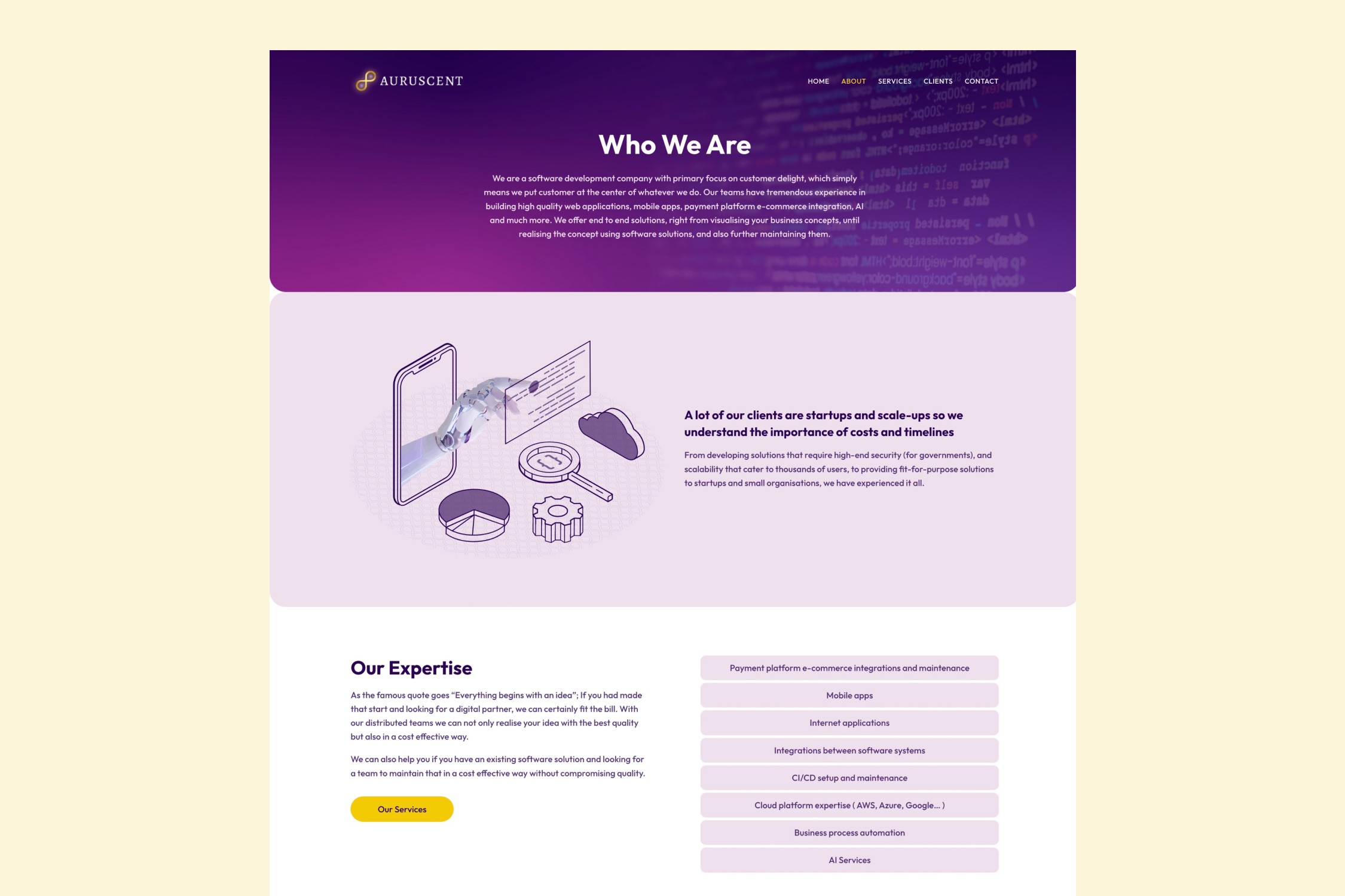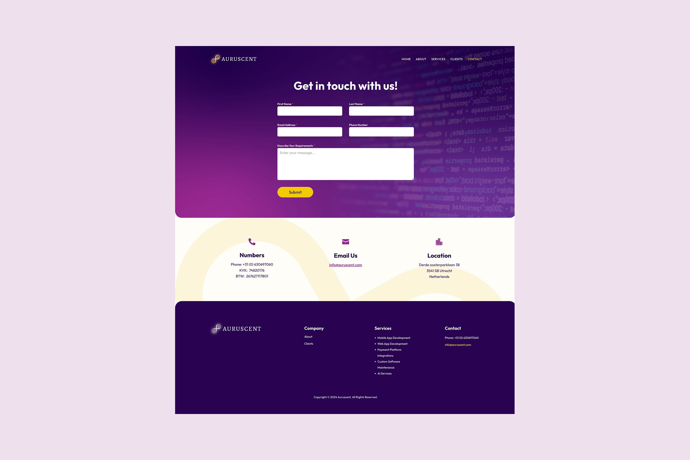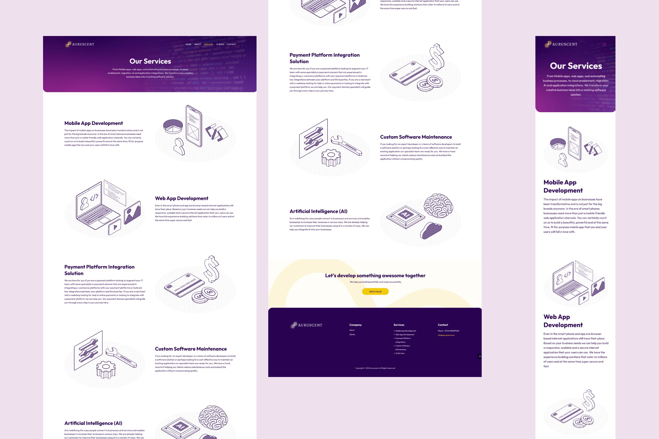 Auruscent is a Netherlands-based fintech and software development company specializing in custom digital solutions. With expertise in mobile and web app development, payment platform integrations, cloud enablement, and AI services, Auruscent serves a diverse clientele, including startups, governments, and enterprises. Their end-to-end solutions focus on turning creative business ideas into scalable and secure software applications, while also offering maintenance and lifecycle management. The company is committed to delivering high-quality, cost-effective technology solutions tailored to meet client needs efficiently.