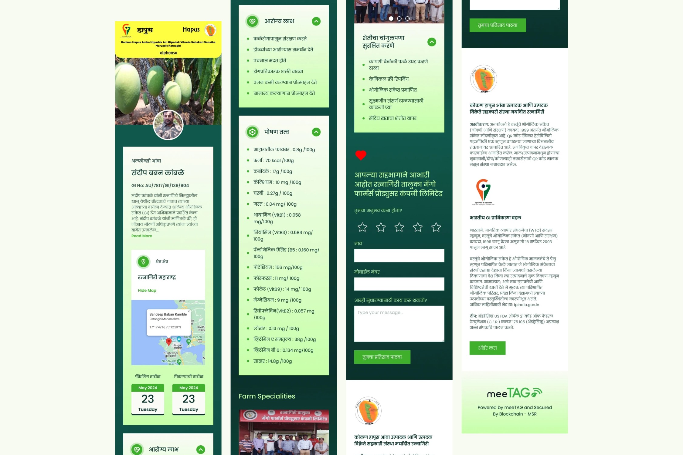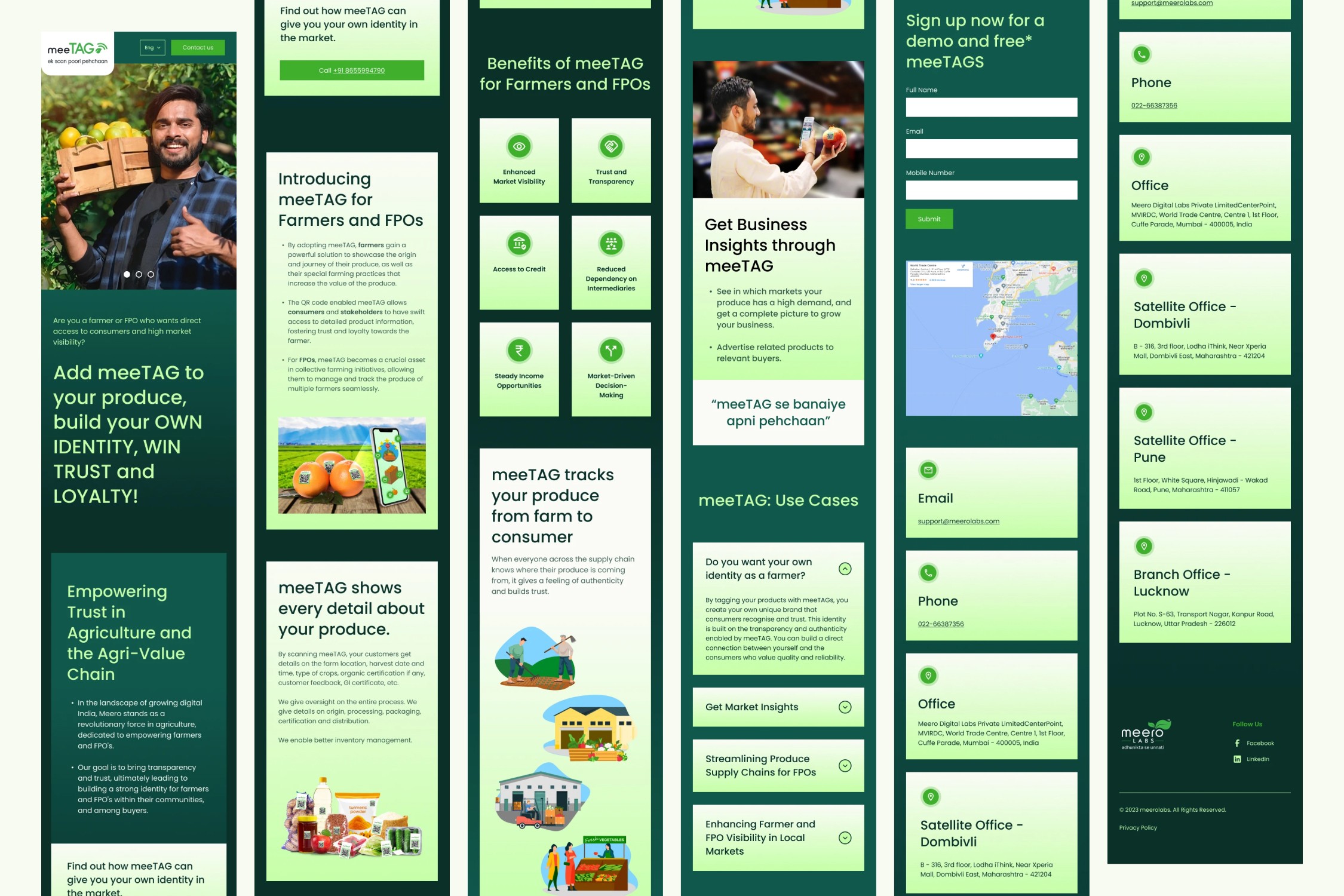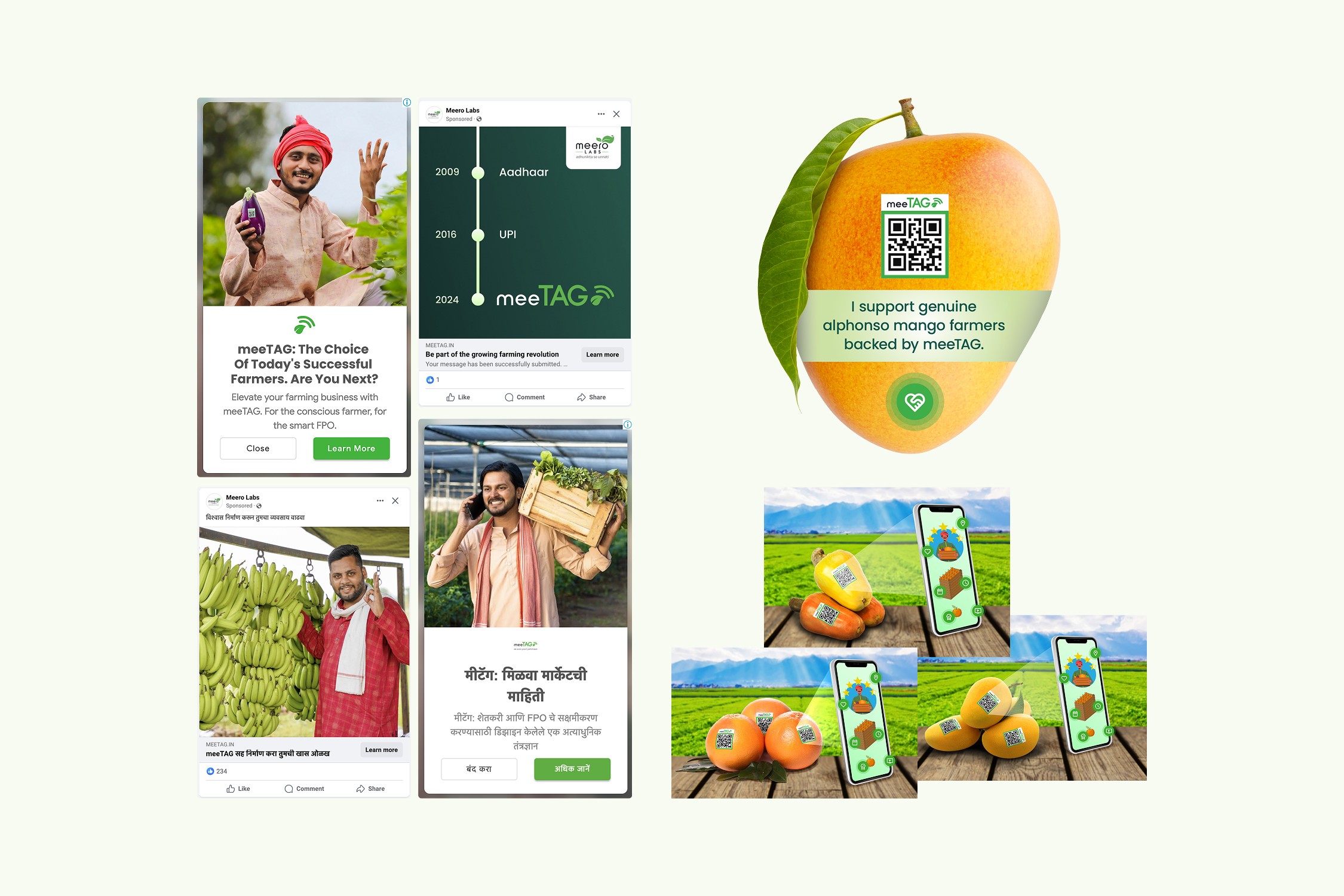 We helped reposition the product by naming and defining meeTAG, giving the traceability system a distinct brand and narrative. A multilingual website prototype was designed for readability and ease of use, allowing farmers and consumers to understand the product through familiar visual cues rather than technical language.