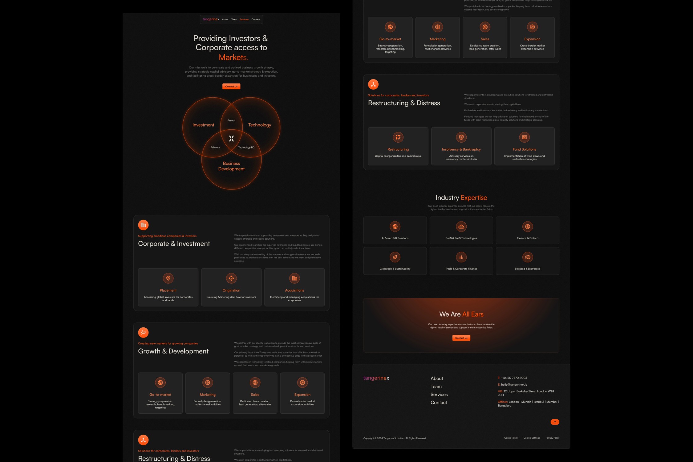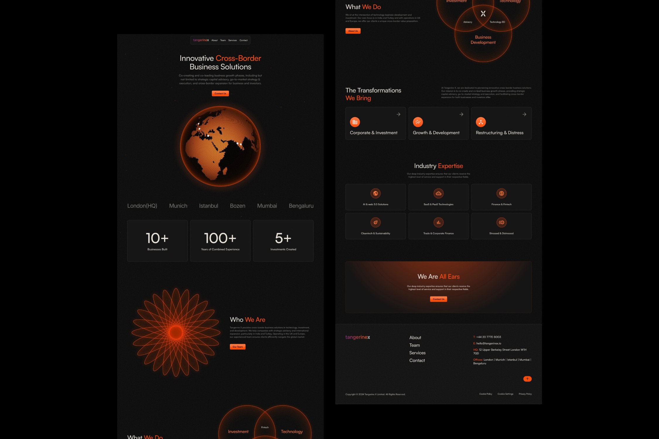 Tangerine X operates at the intersection of cross-border finance, technology, and investment advisory. Their website needed to communicate credibility while feeling forward-looking and globally relevant.