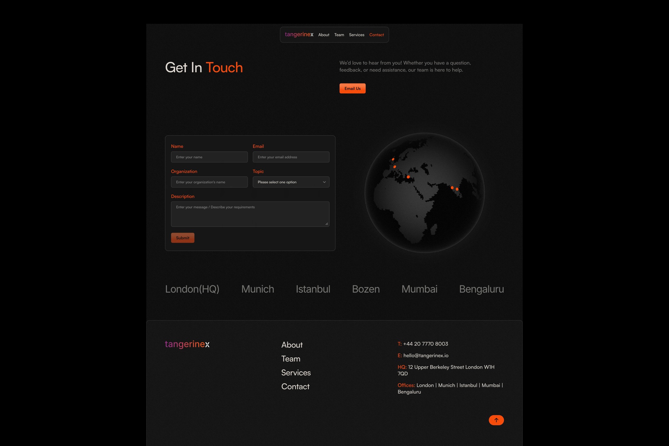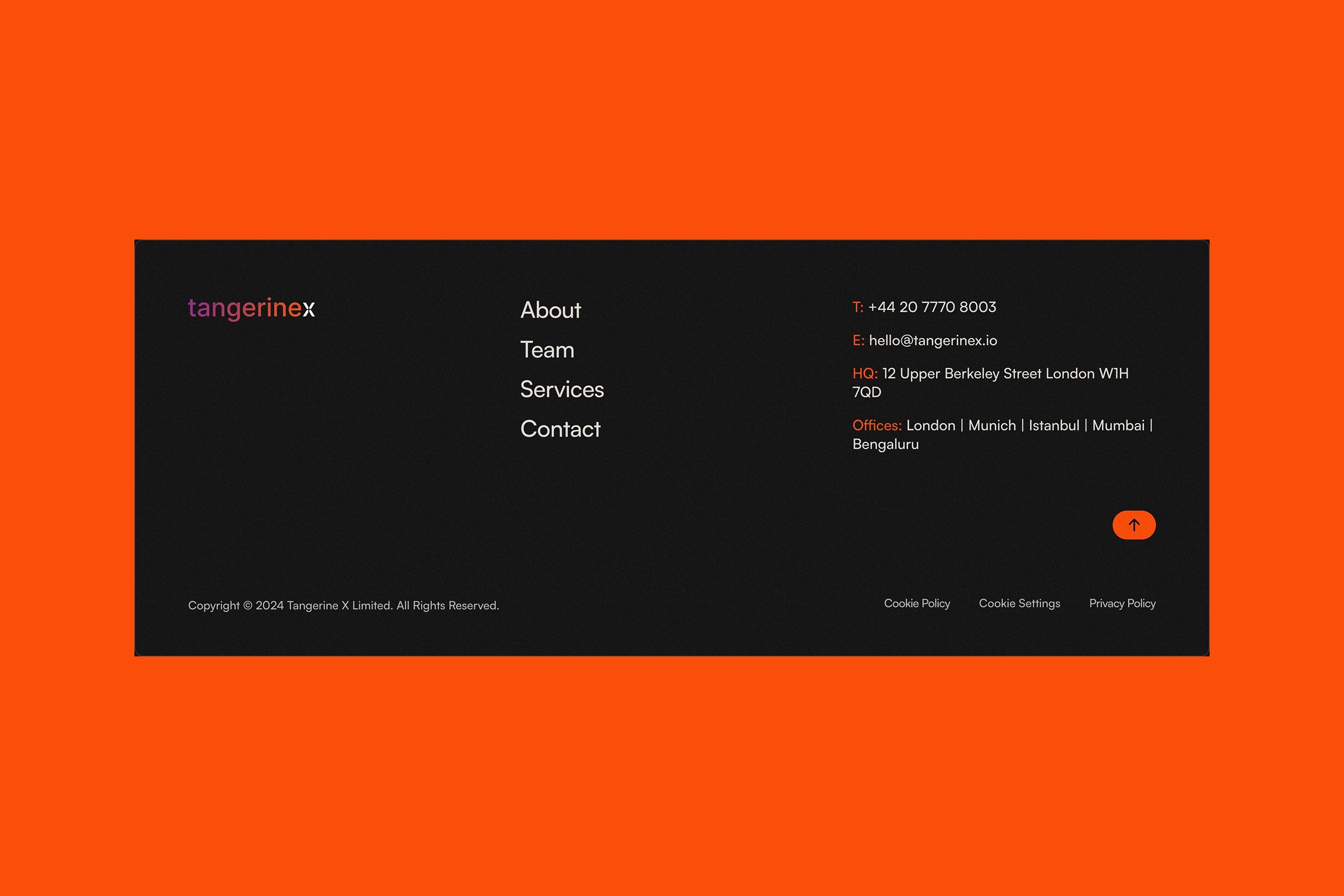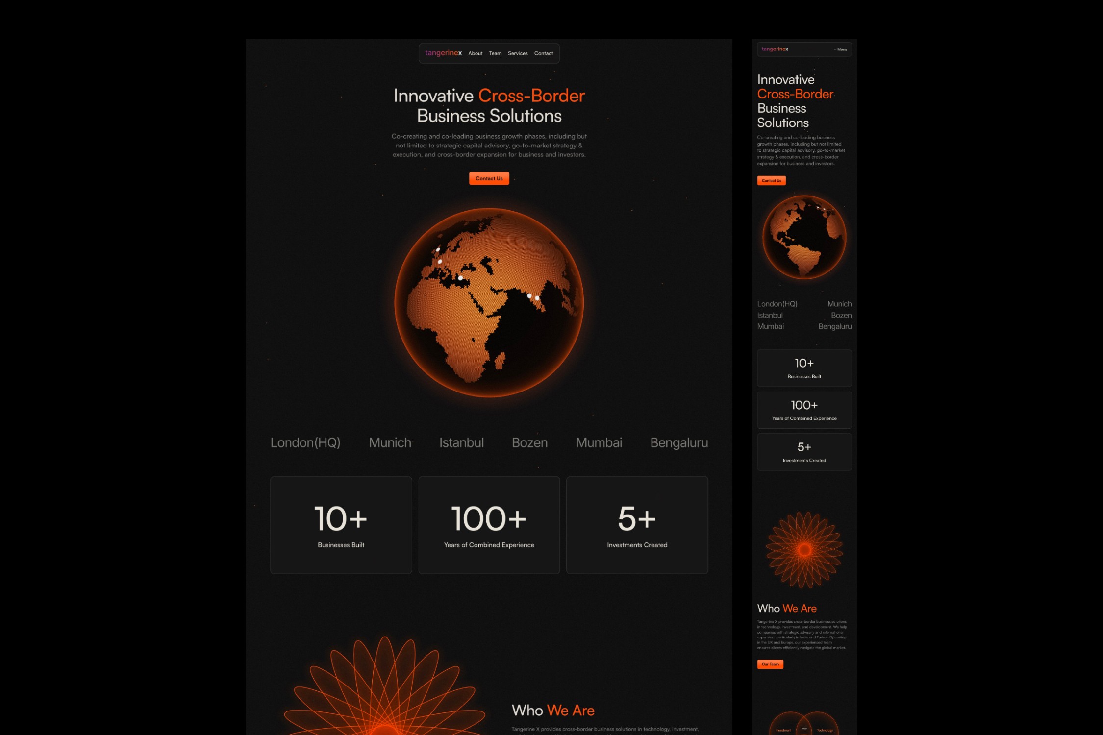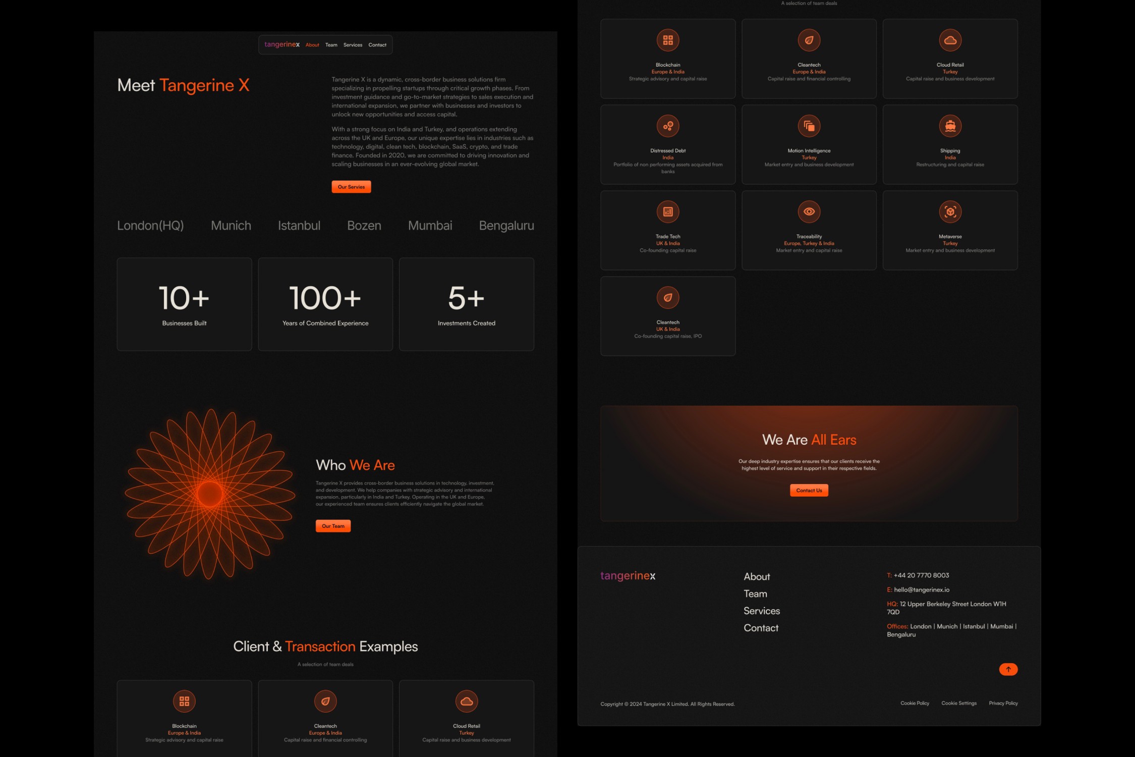 The final experience positioned Tangerine X as a confident, international firm, visually aligned with Web3, fintech, and global advisory audiences without overwhelming users with jargon or clutter.
